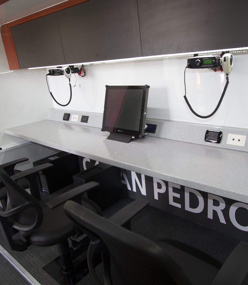 Mobile command units with integrated technology for strategic operations.