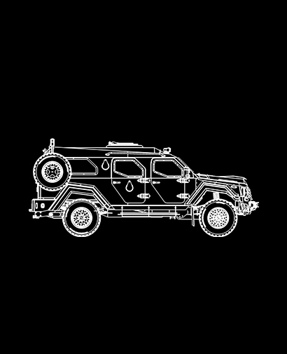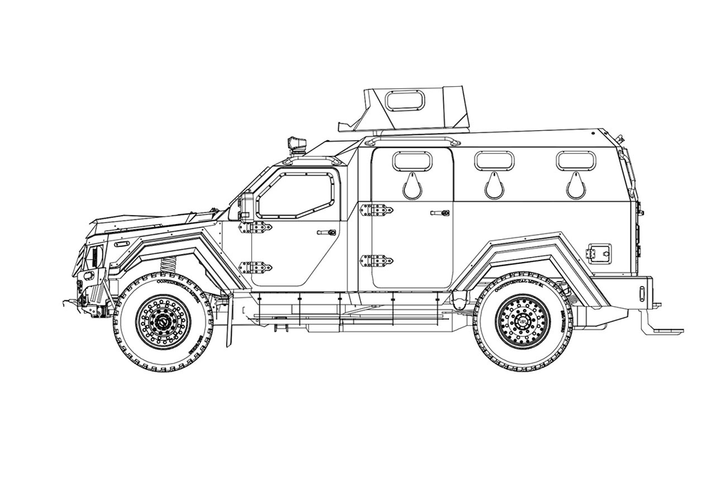 Nivel de blindaje CEN B7/STAN 2 Excelente resultado en operación, confort y funcionalidad Flexibilidad de diseño para aplicaciones específicas Sistemas de freno hidráulico y eléctrico para garantizar un rendimiento de frenado seguro en condiciones normales y de emergencia. Iluminación LED para larga vida útil y bajo mantenimiento Vehículos probados en temperaturas +50 grados y +3000 km de distancia recorrida en varios tipos de terreno, incluidas situaciones extremas de tracción, vadeo y maniobras agresivas en el aire.